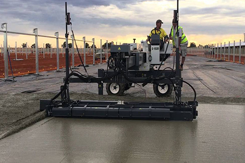 The scraper plate is set at a fixed distance from the height of the laser sensor. The scraper is drawn across the freshly poured concrete levelling the surface with complete accuracy. The vibration unit follows behind making the concrete surface completely smooth.